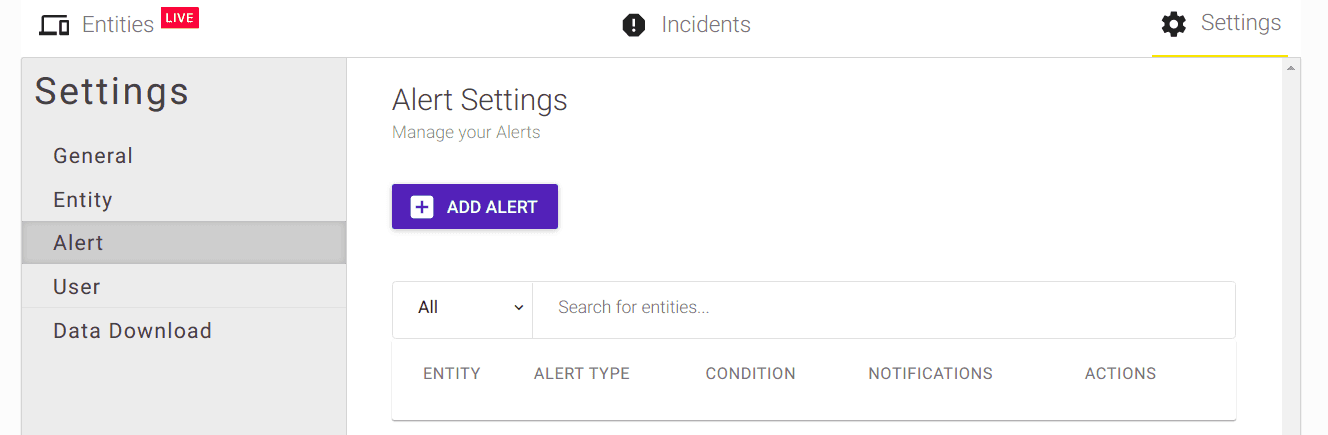 A humidity alert lets you set a safe humidity range for your asset and an alert delay. If your asset goes out of the safe range for longer than the set delay, an alert is triggered.